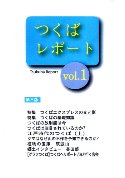 長らく品切れになっていました「つくばレポートvol.1」の第三版が発売になりました。新たに「つくばの放射能は今」を掲載、「つくばの基礎知識」は全面的に改訂され新項目も追加されています。その他、「竜巻でつくば市に大きな被害」を掲載、つくばを知るのに最適な一冊です。書店でご覧ください。