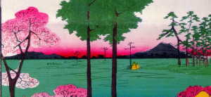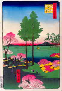 歌川広重『江戸名所図絵』の内、「日暮里諏訪の台」に描かれた筑波山。